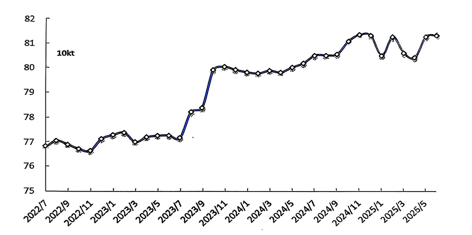 經(jīng)調整,6月份產(chǎn)量為364.5萬噸;預計7月份產(chǎn)量為376.9萬噸,同比增長1.5%,日均產(chǎn)量12.16萬噸,環(huán)比小幅增長0.07%。
